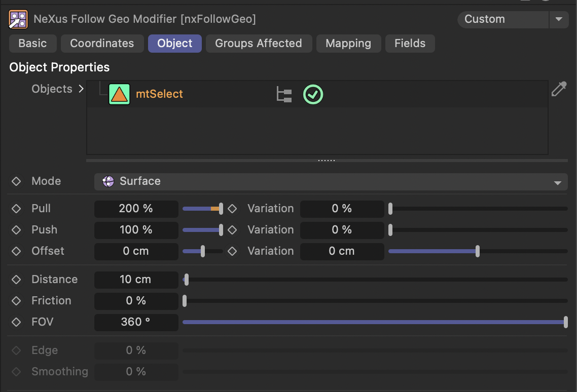 X-Particles의 ntFollowGeo에서 Pull, Push, Offset, Distance, Friction, FOV에 대한 자세한 설명을 드리겠습니다.