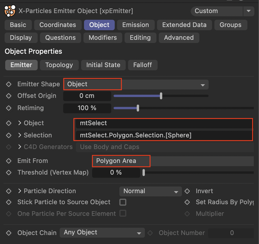 - 작동 방식: Offset 값이 0이면 입자가 표면에 정확히 위치하게 되며, 값이 증가할수록 표면에서 떨어진 위치에 입자가 위치하게 됩니다.