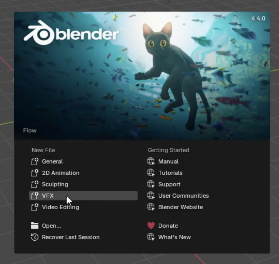 - 스플래시 스크린(Splash Screen): 최근 작업 파일 열기, 새 파일 생성, 매뉴얼 접근 등이 가능한 초기 화면이 나타납니다.