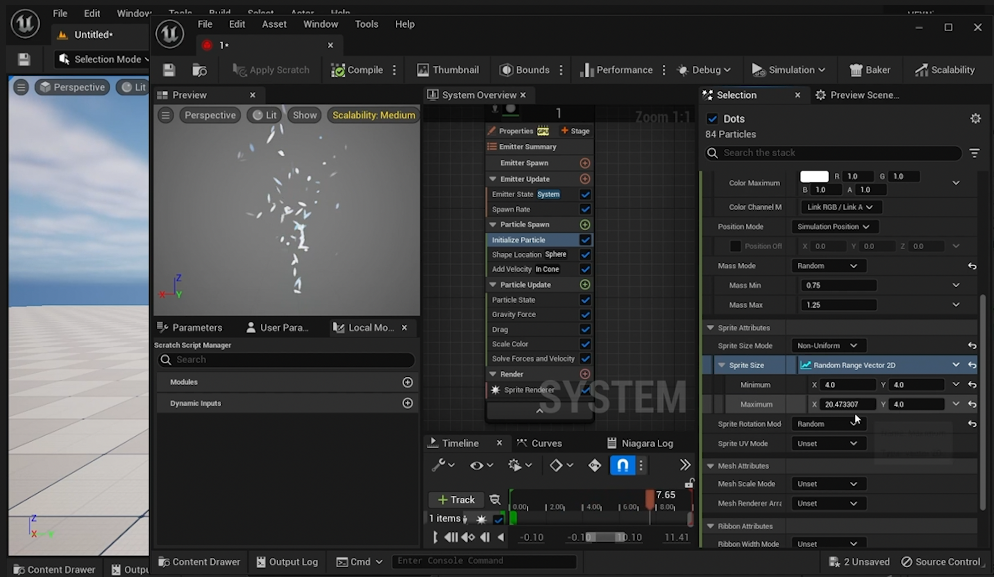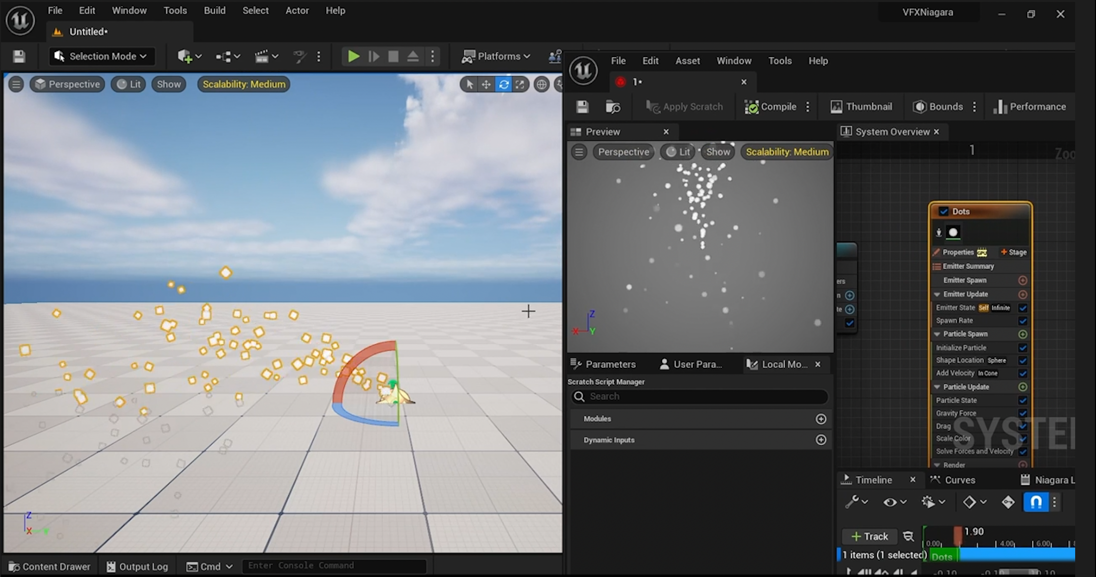 이 글은 Niagara의 첫 Emitter를 만들면서, 파티클의 생성량, 수명, 색, 크기, 생성 위치, 속도, 중력, 마찰, 페이드가 각각 어떤 역할을 하는지 감각적으로 익히게 해주는 입문 강의라고 볼 수 있습니다.