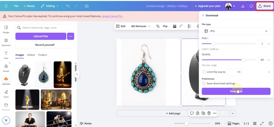 - 방법: 별도의 편집 도구(예: Canva)를 사용하여, 각기 다른 두 개의 제품 이미지(목걸이와 귀걸이)를 하나의 캔버스에 합쳐 한 장의 이미지로 만듭니다.
