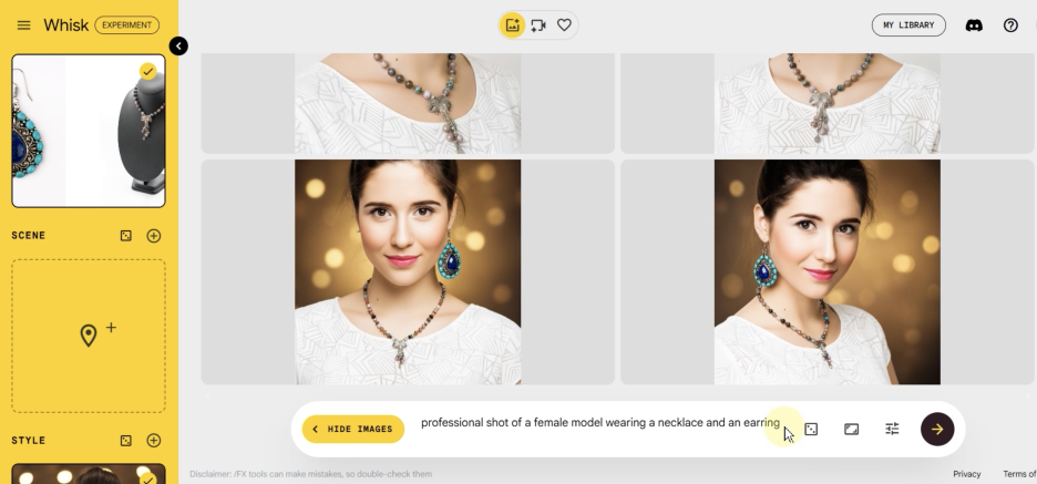 AI 도구를 사용할 때 참조할 수 있는 이미지 슬롯(개수)이 제한되어 있어, 여러 개의 제품(목걸이, 귀걸이 등)과 스타일 이미지를 동시에 반영하기 어려운 기술적 한계가 발생합니다.