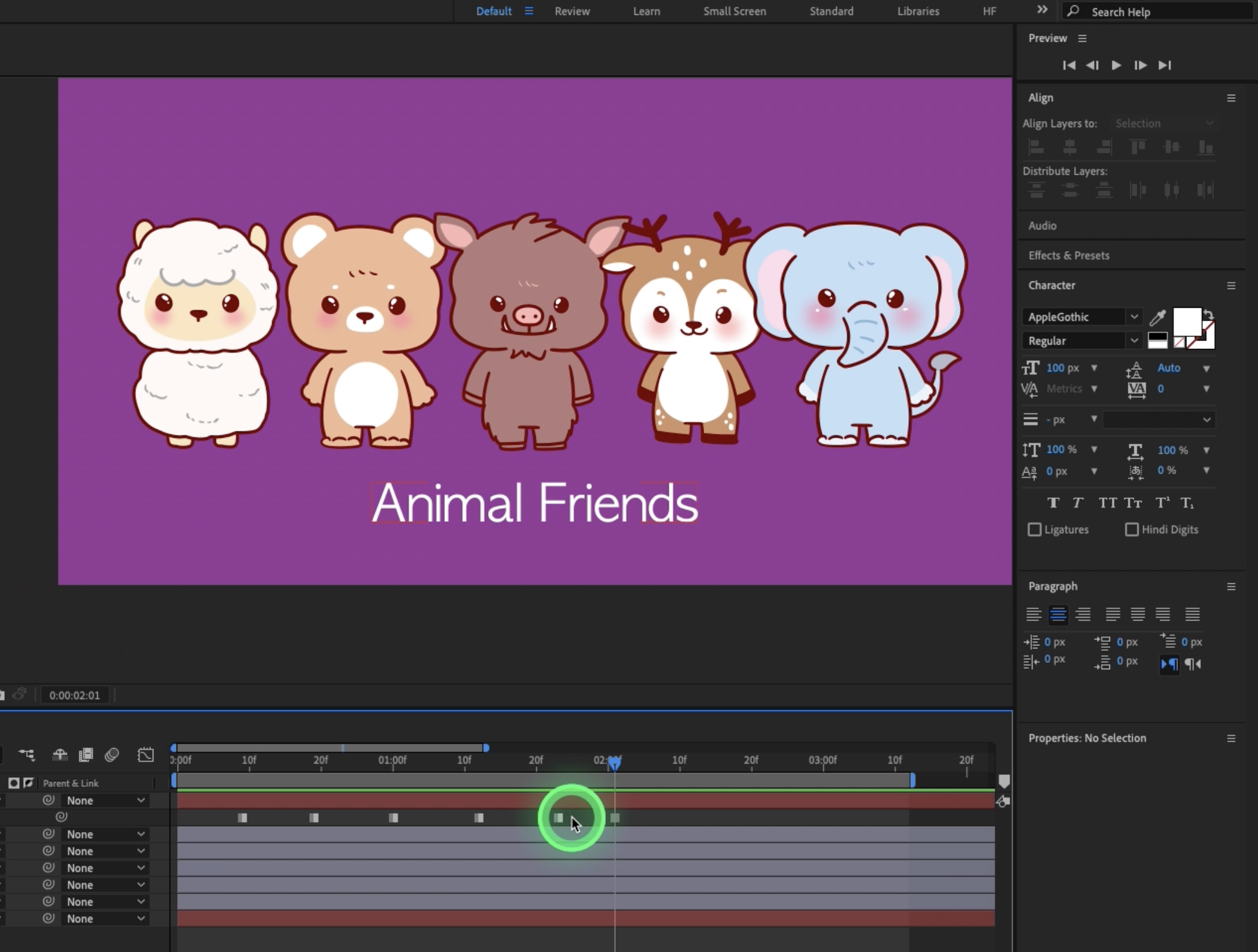 오브젝트를 여러 개 배치하고 정렬하는 작업도 애니메이션 설계의 일부입니다