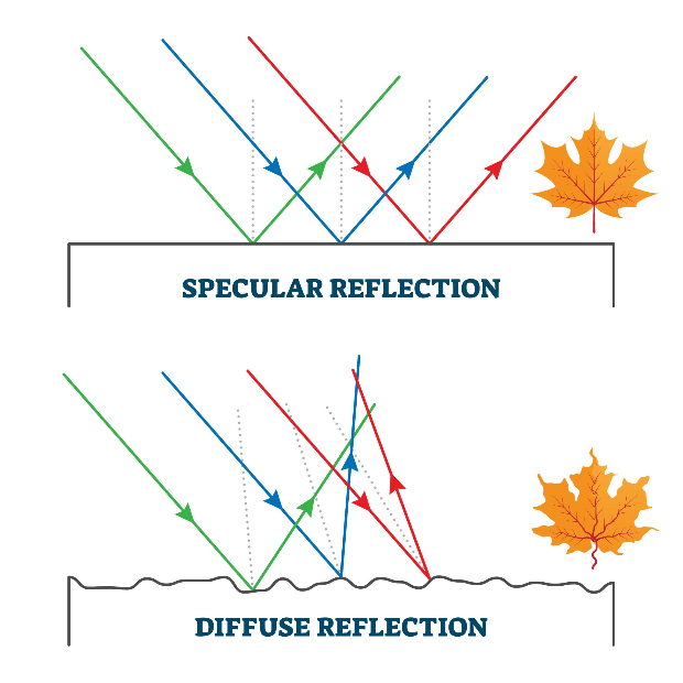 - 간접 반사 (Indirect Specular): 주변 사물이나 배경이 물체 표면에 비치는 반사입니다.