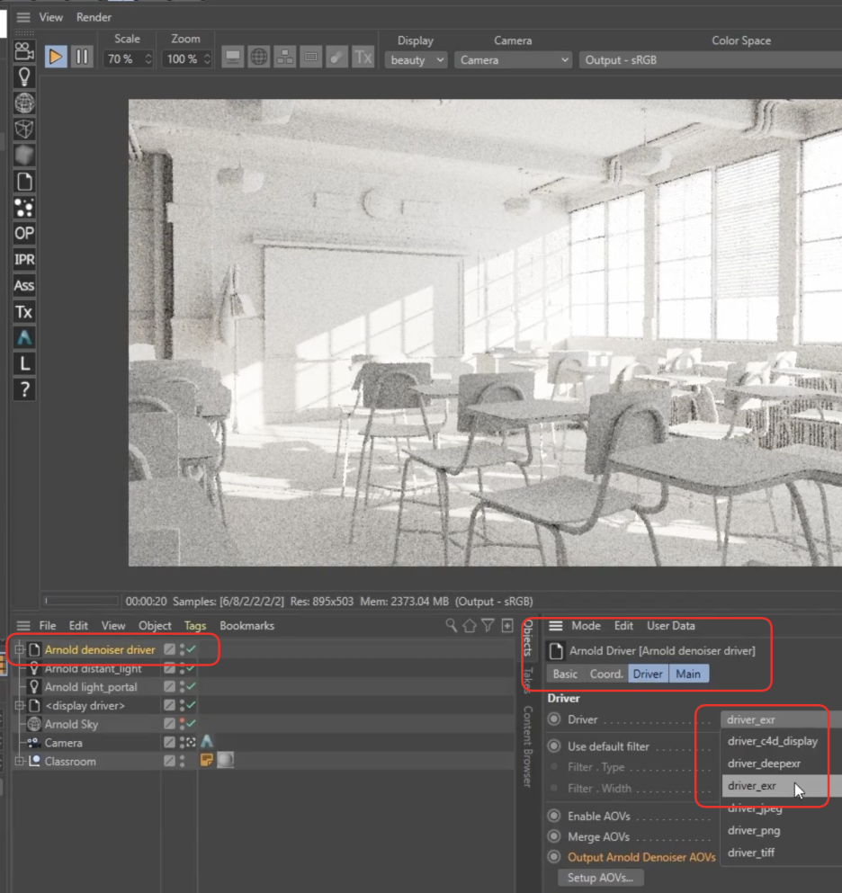 - Arnold Denoiser 탭에서 Create EXR Driver를 클릭합니다.