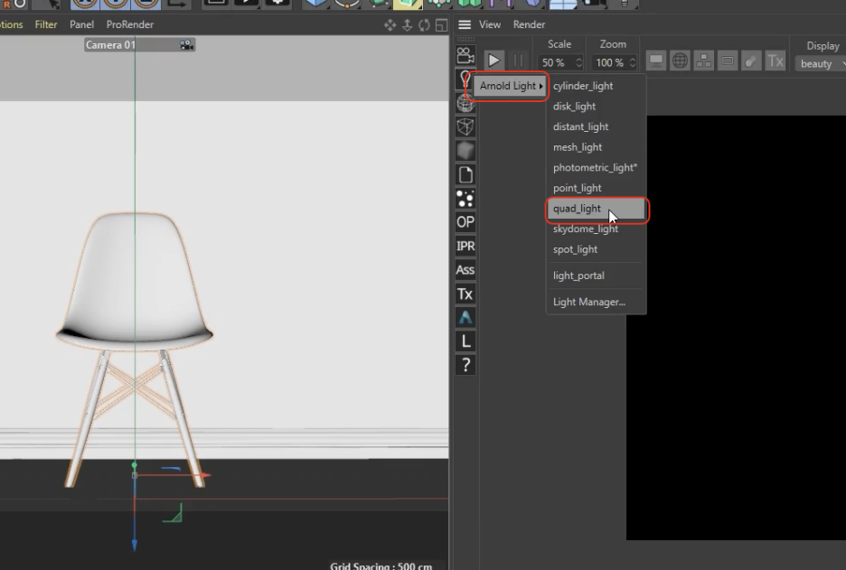 - 쿼드 라이트(Quad Light): 실제 세계의 소프트박스와 유사한 사각형 조명으로, 부드럽고 자연스러운 조명을 제공하여 가장 자주 사용됩니다.