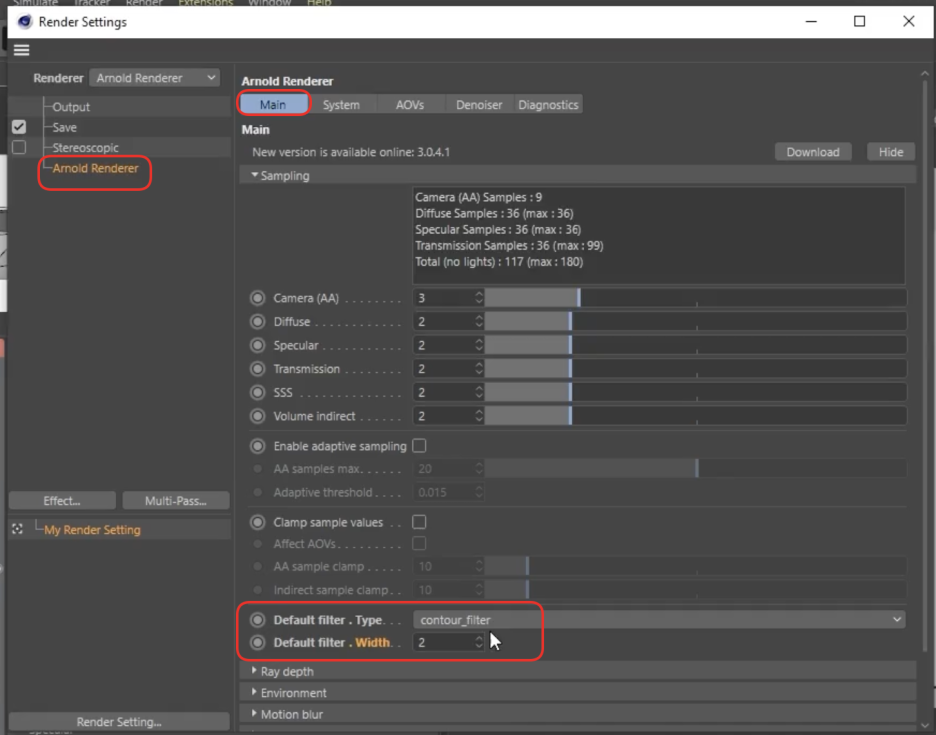 - Filter Type: Contour로 변경해야 외곽선이 감지되고 렌더링됩니다.