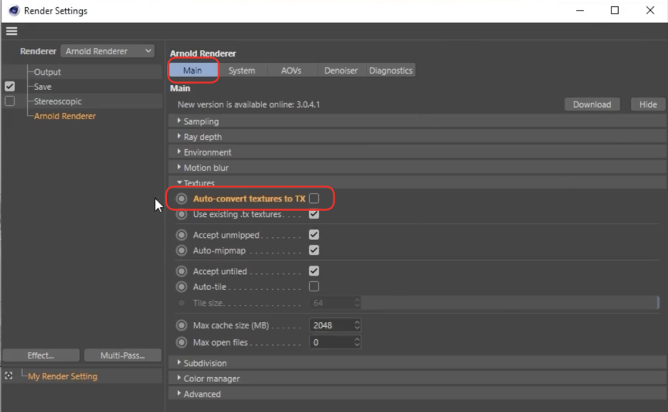 - .tx 텍스처: 아놀드는 .tx 포맷을 선호하지만, GPU 테스트 시에는 Auto-convert Textures to TX 옵션을 잠시 꺼서 변환 시간을 절약할 수 있습니다.