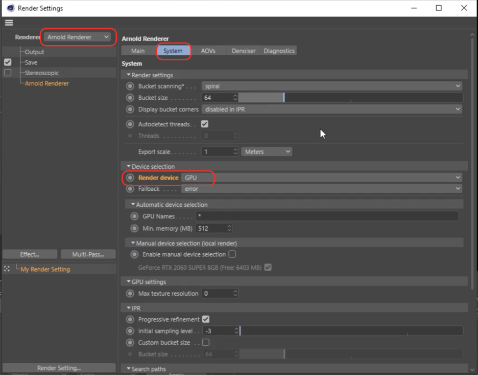 - 설정: Render Settings > System > Render Device에서 GPU로 변경하면 활성화됩니다.