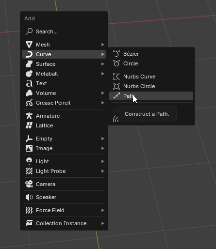 예를 들어, 다른 **곡선(curve)**을 사용할 수 있습니다. 메시(mesh) 객체라면 작동하지 않고 **곡선(curve)**에서만 작동합니다. 예를 들어, 삼각형 모양을 만들고 싶다고 해보겠습니다.