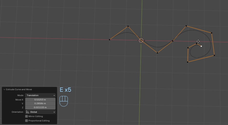 - E 키 (돌출): 메시(Mesh)에서와 같이 돌출 도구입니다.