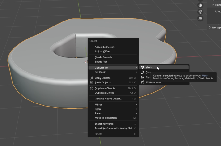 흥미로운 형태를 만들었다면, **메시로 변환(Convert to Mesh)**할 수 있습니다. 그러면 메시가 됩니다. 하지만 상단에 삼각형이 많이 생기는 등 많은 정점이 생겨서, 정말 깔끔한 메시를 얻으려면 추가적인 작업이 필요할 수 있습니다. 그럼에도 불구하고, 볼륨을 매우 빠르고 쉽게 얻을 수 있습니다.