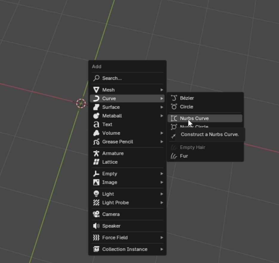 - NURBS 커브(NURBS Curve): 점들을 돌출시키는 방식이지만, 원하는 모양을 만들기에는 다루기 쉽지 않습니다.