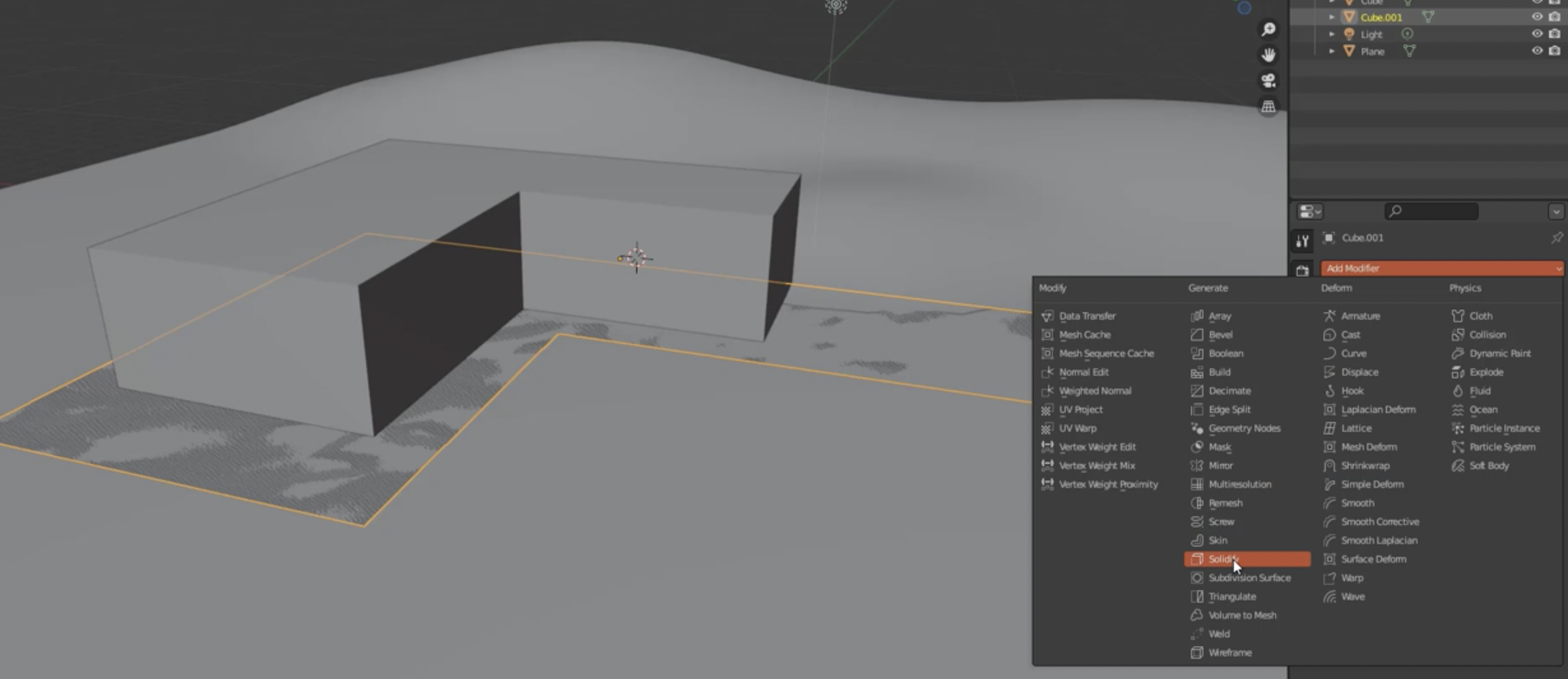 - Thickness 값을 조절하여 벽 두께 설정 (예: 0.04)