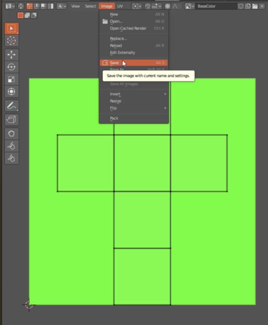 필요하면 UV Editing에서 Image > Save As로 외부 파일로 저장할 수 있습니다.