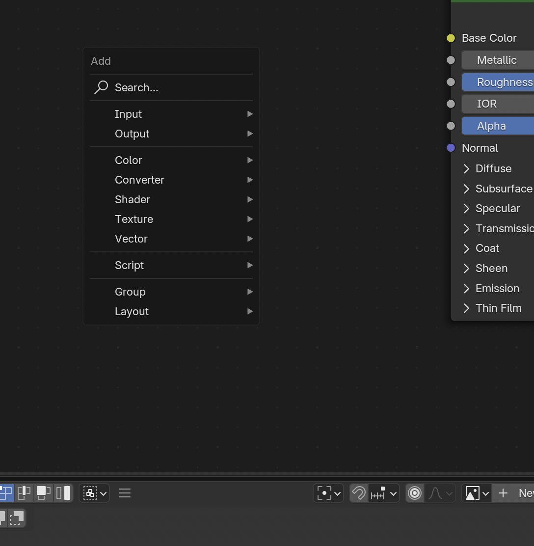 - Shift + A를 누르면 새 항목을 추가할 수 있는 메뉴가 열립니다.