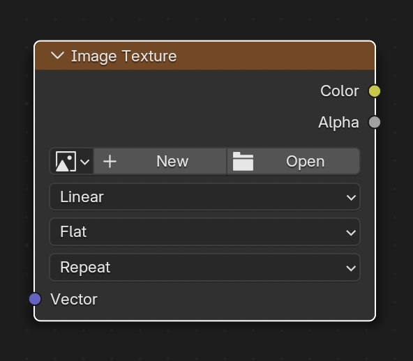 - Image Texture 노드를 추가해서 ‘Open’으로 파일을 열거나