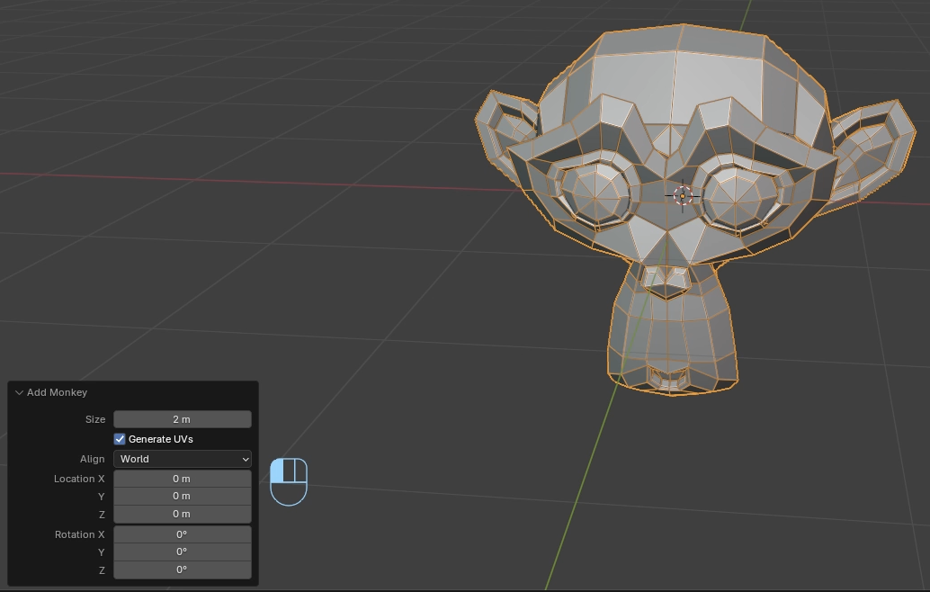 여기서 기본 크기를 선택할 수 있습니다. UV를 생성할지 여부를 선택할 수도 있지만, UV는 나중에 2D 뷰에서 객체를 조작하는 방법에 대해 다룰 것입니다. 또한, 뷰에 정렬할지, 3D 커서에 정렬할지, 월드에 정렬할지 선택할 수 있습니다. 그리고 객체의 위치와 회전을 변경할 수 있지만, 이 작업은 나중에도 할 수 있습니다. 이 객체는 단순히 시작할 수 있는 표면이며 특별한 것은 없습니다. G와 X를 사용하여 객체를 X축으로 이동할 수 있습니다.