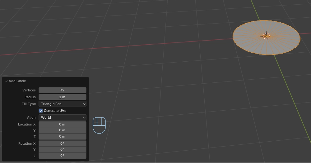 그다음은 좀 더 많은 옵션을 가진 서클입니다. 서클은 **엔곤(N-gon)**으로 표면을 채울 수 있습니다. 엔곤은 하나의 면으로만 구성됩니다. 와이어프레임에서는 아무런 변화가 없지만, 트라이앵글을 선택하면 꼭지점의 수에 따라 삼각형이 만들어지는 것을 볼 수 있습니다. 기본값은 32입니다. 일반적으로 쿼드 (4개의 꼭지점을 가진 면)로 모델링하는 것이 좋기 때문에 서클의 꼭지점 수는 짝수로 선택하는 것이 좋습니다. 특정 경우를 제외하고는 항상 짝수를 사용하는 것이 좋습니다. 여기에서 꼭지점 수를 변경할 수 있습니다. 예를 들어 8을 넣으면 팔각형이 됩니다. 반지름을 늘리면 결과를 볼 수 있습니다. 꼭지점 수를 늘릴수록 완벽한 원에 가까워집니다. 기본값인 32가 좋지만, 저는 24나 16도 자주 사용합니다. 이는 모델링 세션에서 다시 다룰 것입니다. 서클은 자주 사용하게 될 또 다른 객체입니다.