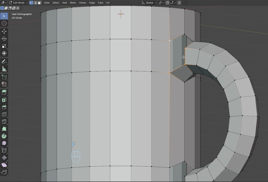 - 오브젝트 이름 바꾸기(Rename your object): 절대로 잊지 마세요. 모델링을 많이 하면 Circle.001, Circle.002처럼 엉망이 될 수 있습니다. 오브젝트 이름을 바꾸는 것이 매우 중요합니다. **머그컵(Mug)**이라고 부릅시다.