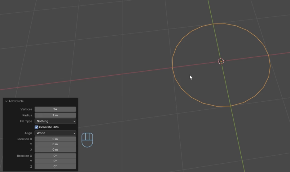 먼저, **원(Circle)**을 추가합니다. 이 원은 **24개의 정점(vertices)**을 가집니다. 이 숫자를 선택한 이유는 첫째, 짝수이기 때문입니다. 쿼드(quads)로 이동하려면 짝수가 중요합니다. 예를 들어, 12개를 선택하면 원 모양을 만들기에 충분한 정점이 없을 수 있습니다. 멀리서도 원형으로 보이는 것이 중요하며, 나중에 세분화 표면(subdivision surface) 수정자를 사용하면 모든 것을 부드럽게 만들 수 있지만, 시작할 때 충분한 정점을 갖는 것이 좋습니다.