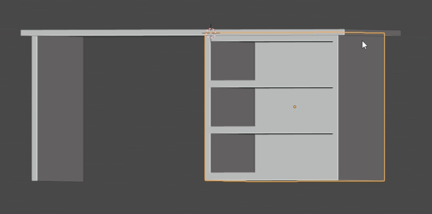 이제 개체가 잘 설정되었습니다. 원본과 함께 그것을 선택하고 Shift+E를 두 번, Shift+R을 눌러 반복하면 이제 개체가 있습니다. 저는 책상과 서랍을 분리해서 보관하는 것을 좋아합니다. 그래서 여기에서 'drawer'라고 부르고 Ctrl+C를 누르고 이제 Ctrl+V, Ctrl+V만 하면 됩니다. 그래서 모든 것이 잘 되었습니다.