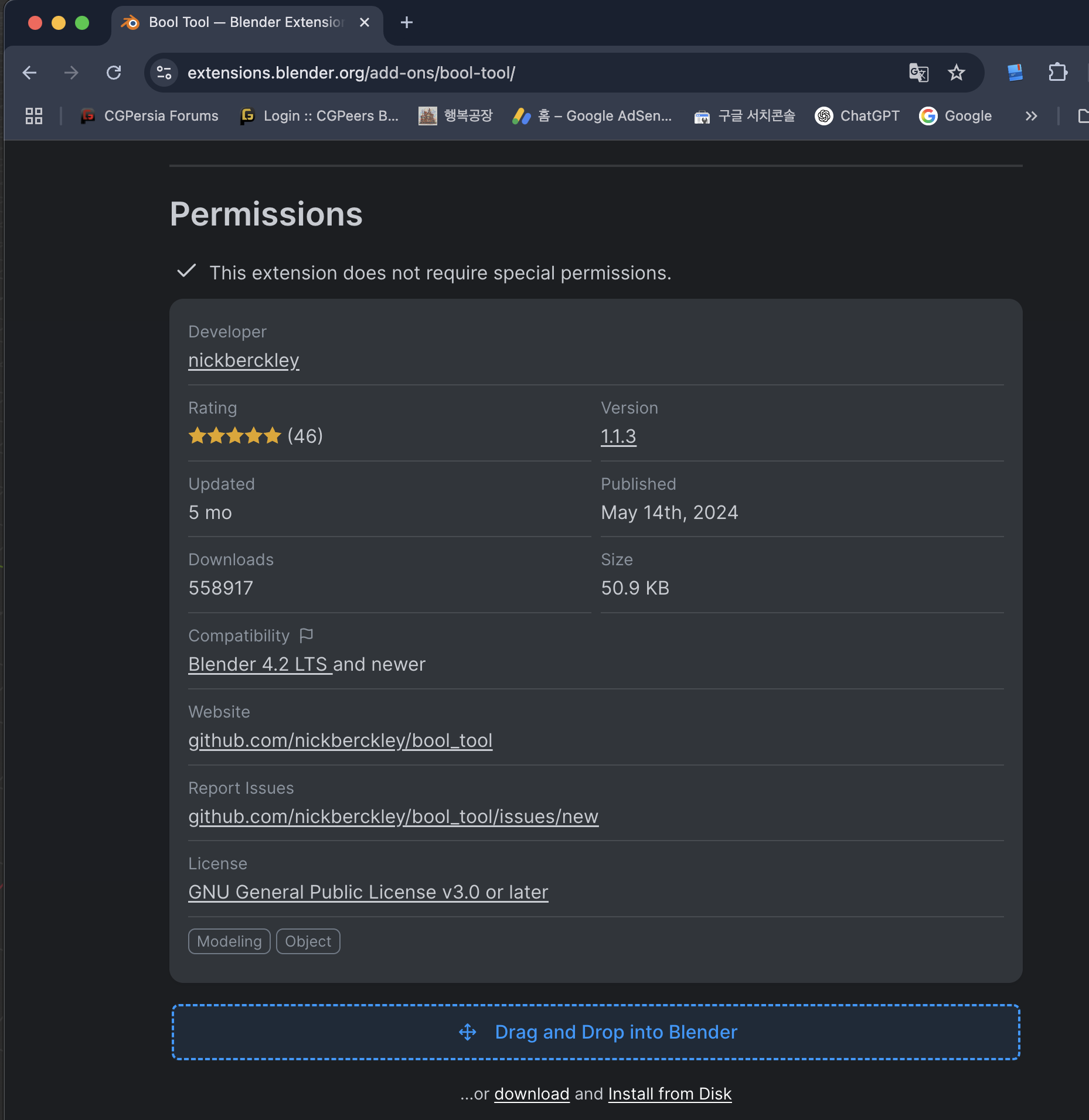 Add-ons로 검색해서 없으면 구글에서 Blender Bool Tool을 검색해서 설치해주시면 됩니다.