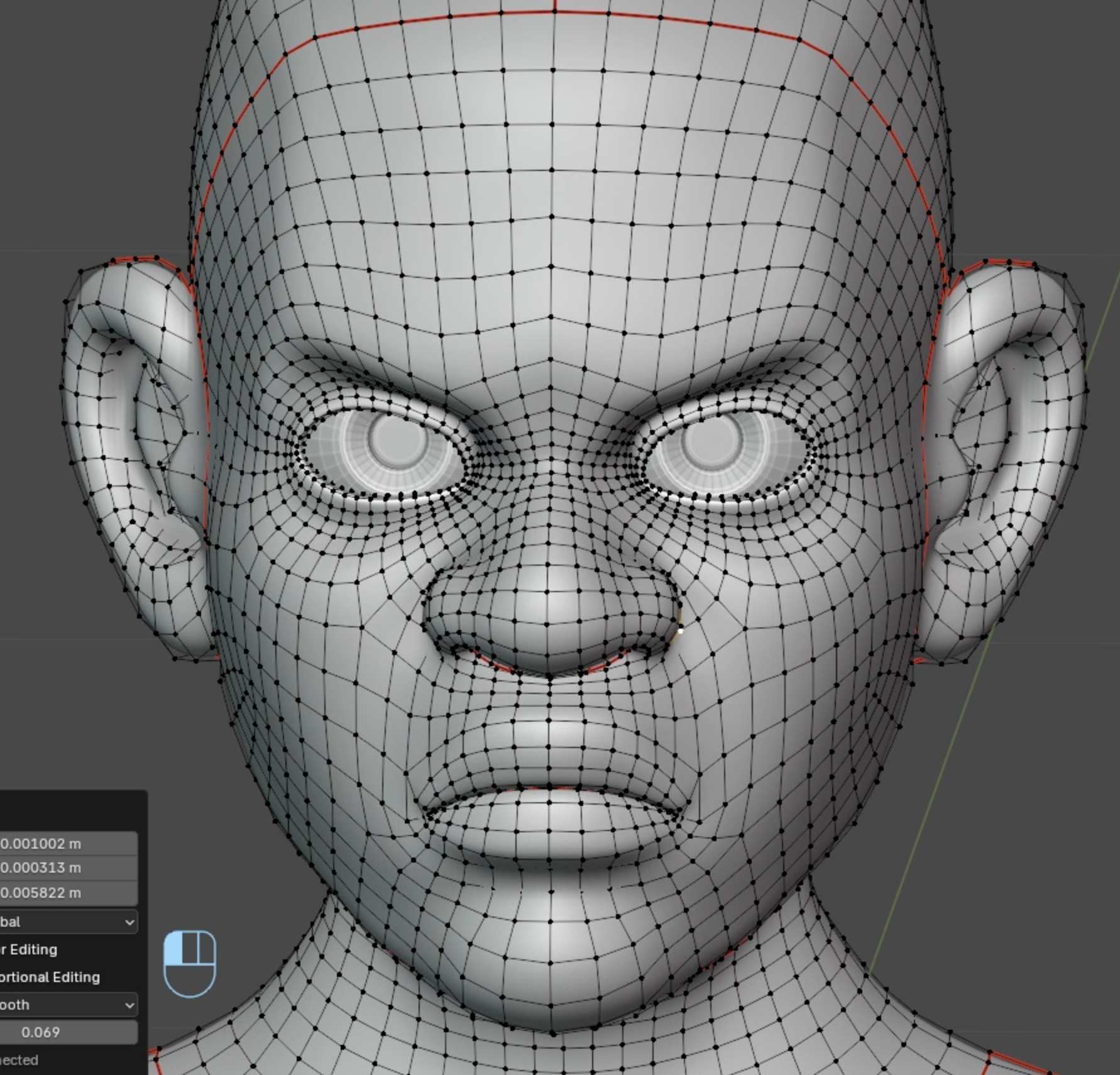 이처럼 비례 편집 도구와 셰이프 키는 함께 사용하여 유기적인 모델링과 표정 제어에 큰 도움을 줍니다.