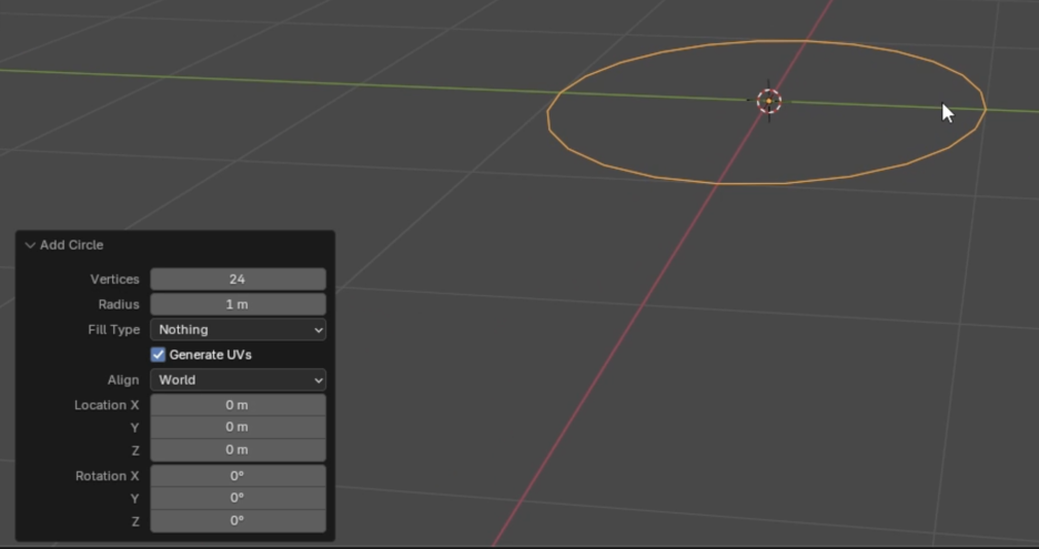 우선, 여기서는 모든 것을 지우고 **원(circle)**을 추가하겠습니다. 헤드폰의 이어컵이라고 부르는 부분을 먼저 모델링할 겁니다. 한쪽을 먼저 모델링한 다음 다른 쪽은 **미러 모디파이어(mirror modifier)**를 활성화할 겁니다. 전면 정사영(orthographic) 뷰와 **편집 모드(edit mode)**에서 24개의 정점(vertex)을 가진 원을 사용하겠습니다.