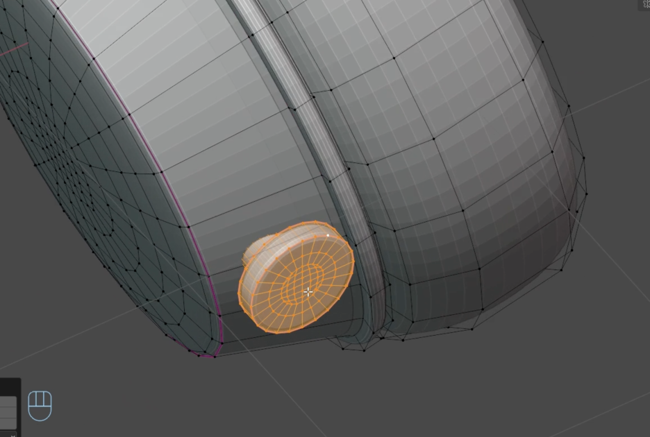서브디비전 서피스에서만 작동하며, Shift + E를 사용하면 **크리즈(crease)**를 만들 수 있습니다. 선택한 부분에만 동일한 효과를 줍니다. 선택을 해제하면 분홍색으로 표시되어 이 부분을 크리즈했다는 것을 보여줍니다. 여기에도 Shift + E로 크리즈를 만들면 우리가 원하는 올바른 모양이 나옵니다. 벌써 좋아 보입니다.