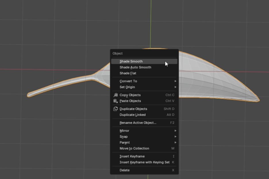 - 모디파이어 적용: 솔리디파이(Solidify) 모디파이어를 추가하여 잎에 두께를 줍니다. 서브디비전 서피스(Subdivision Surface) 모디파이어를 추가하여 잎을 부드럽게 만듭니다. 줄기 부분을 선택하고 S를 눌러 크기를 줄여 잎과의 연결이 자연스러워 보이도록 합니다. 필요하면 Ctrl + R로 루프 컷을 더 추가합니다. **오브젝트 모드(Object Mode)**에서 마우스 오른쪽 버튼을 클릭하여 Shade Smooth를 적용합니다.