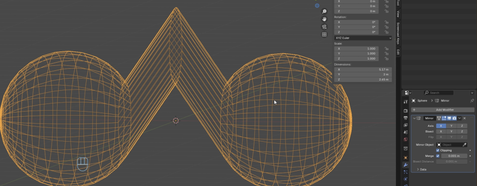 - 병합(Merge): 미러 평면에 가까운 정점을 병합하여 대칭 객체를 모델링할 때 단일의 매끄러운 메시를 만듭니다.