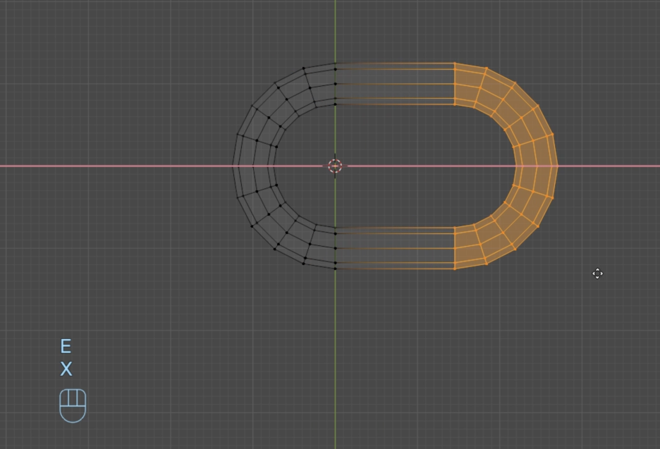 • 링크 모양 변형: 편집 모드에서(Tab 키) 반쪽을 선택하고 X축을 따라 돌출하여 타원형 링크를 만듭니다.