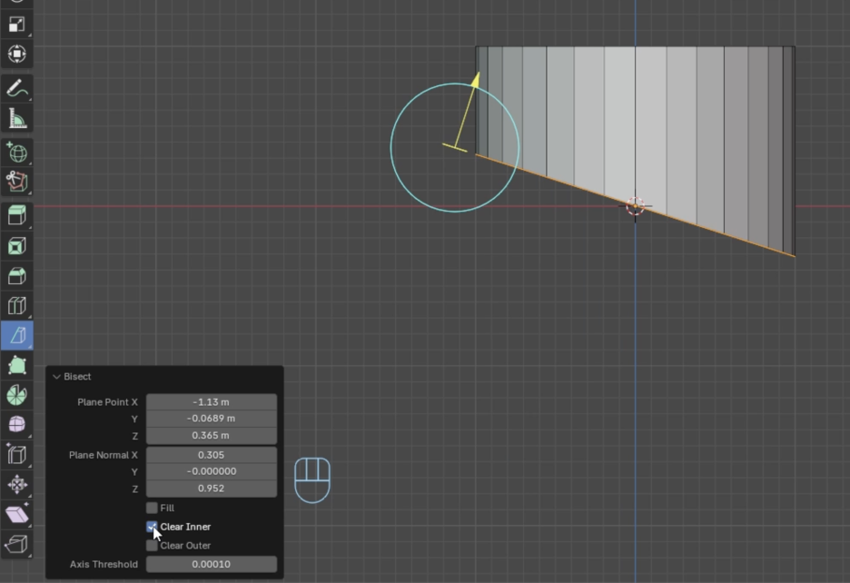 비섹 툴은 지오메트리를 직접 자르는 도구입니다. 원하는 각도로 자르고 내부 (Clear Inner) 또는 **외부 (Clear Outer)**를 제거하거나 자른 부분을 채울 (Fill) 수 있어 매우 유용합니다. 최근에는 **폴리라인 카브 (Polyline Carve)**와 유사한 기능이 있어 더 효율적으로 사용할 수 있습니다.