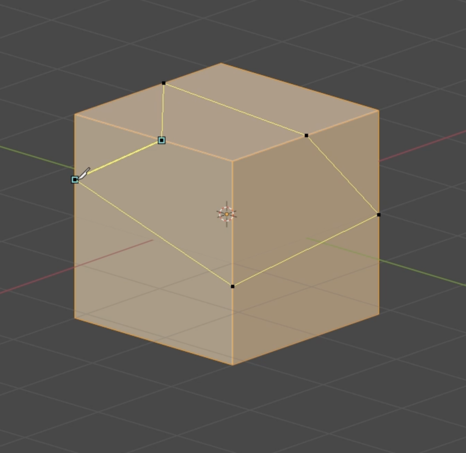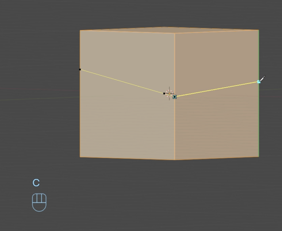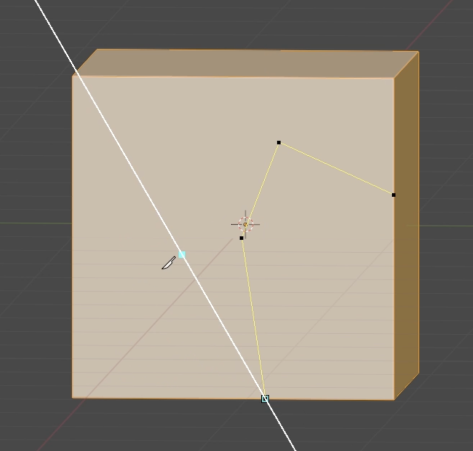 먼저 나이프 툴이 있습니다. 단축키는 K입니다. 나이프 툴은 기본적으로 지오메트리를 자르고 추가합니다. 예를 들어, K를 누르고 모양을 그리면 그 경로를 따라 새로운 지오메트리가 생성됩니다.