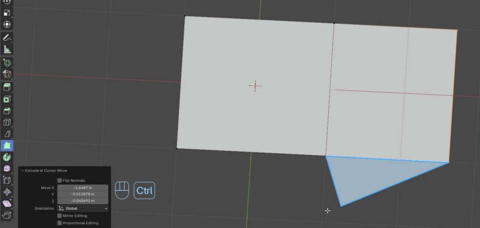 폴리 빌드는 제가 자주 사용하지는 않지만 유용할 때가 있습니다. 편집 모드에서 오브젝트를 선택하면 모서리가 파란색으로 강조됩니다. 클릭 드래그로 **면을 돌출 (Extrude)**시키거나, Ctrl+클릭으로 **삼각형 (Triangles)**을 만들 수 있어 새로운 모양을 쉽게 만들 수 있습니다. 하지만 개인적으로는 일반 돌출 (Extrusion) 도구를 선호합니다.