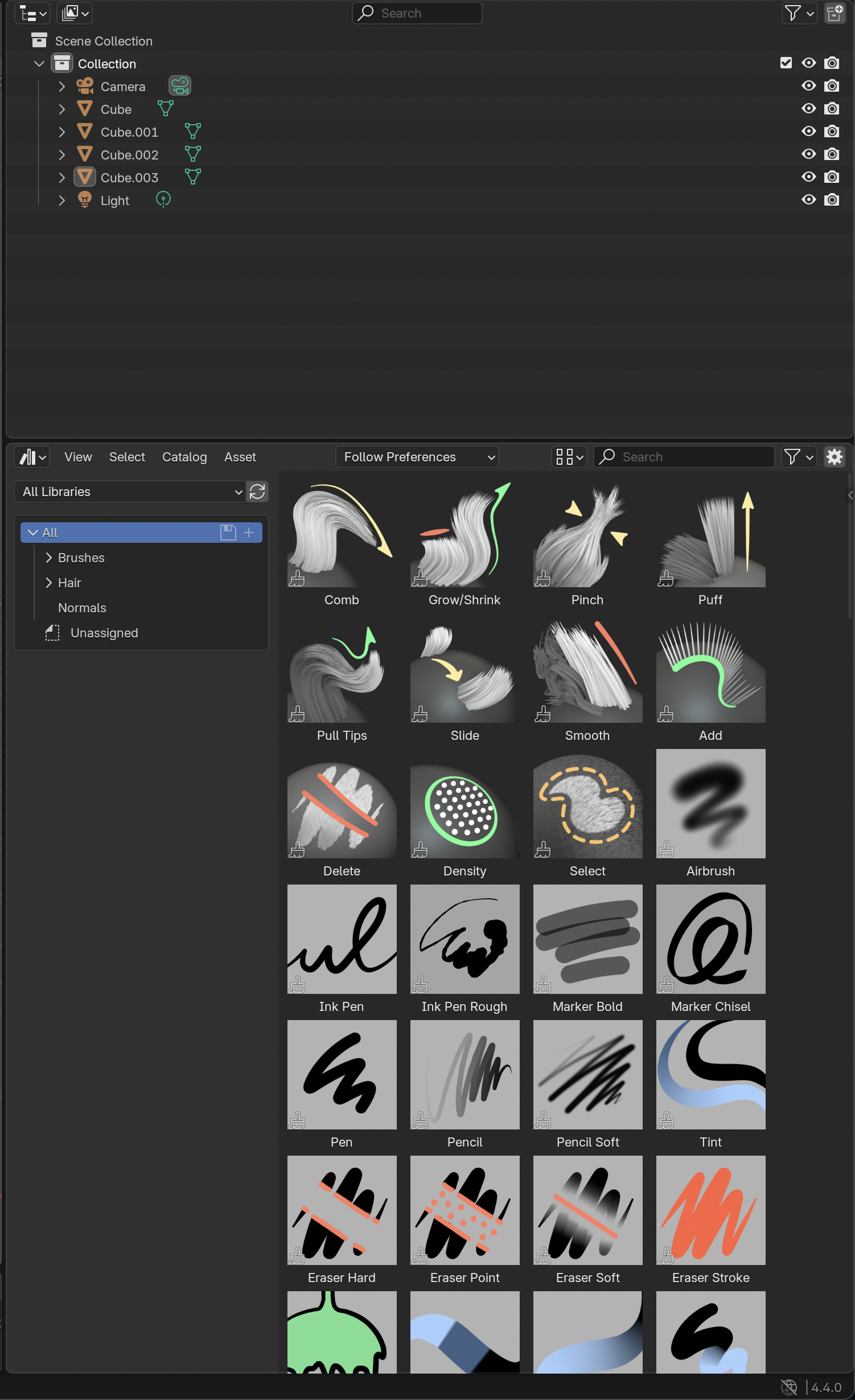 이 안에는 Blender 안에 있는 기본 에셋들이 있습니다.