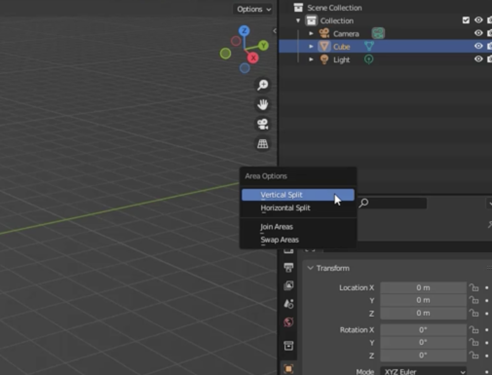 예를 들어, 블렌더 창의 두 영역 사이 중간에 있는 검은색 선으로 커서를 가져가면 커서가 양쪽 화살표 모양으로 바뀝니다.