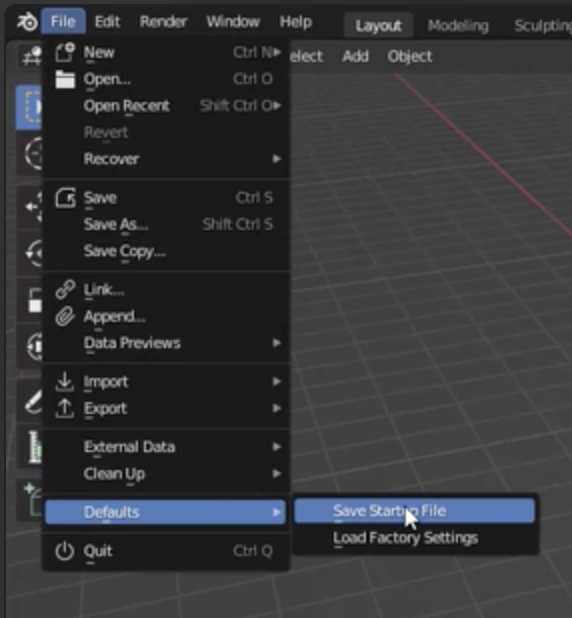즉, 일부 설정을 바꾸거나 인터페이스를 조정한 뒤, **Startup File(시작 파일)**로 저장하면 블렌더를 열 때마다 그 상태로 유지된다는 뜻입니다.