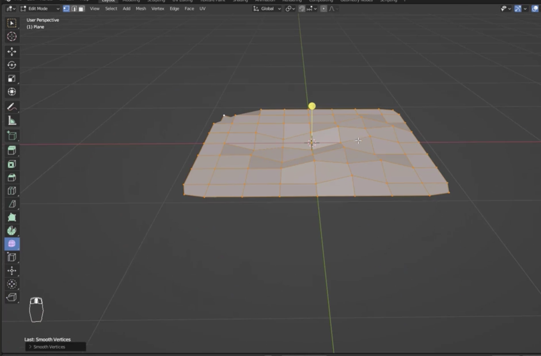 예를 들어 **Plane(평면)**을 나누고 위아래로 움직여 거칠게 만든 뒤,