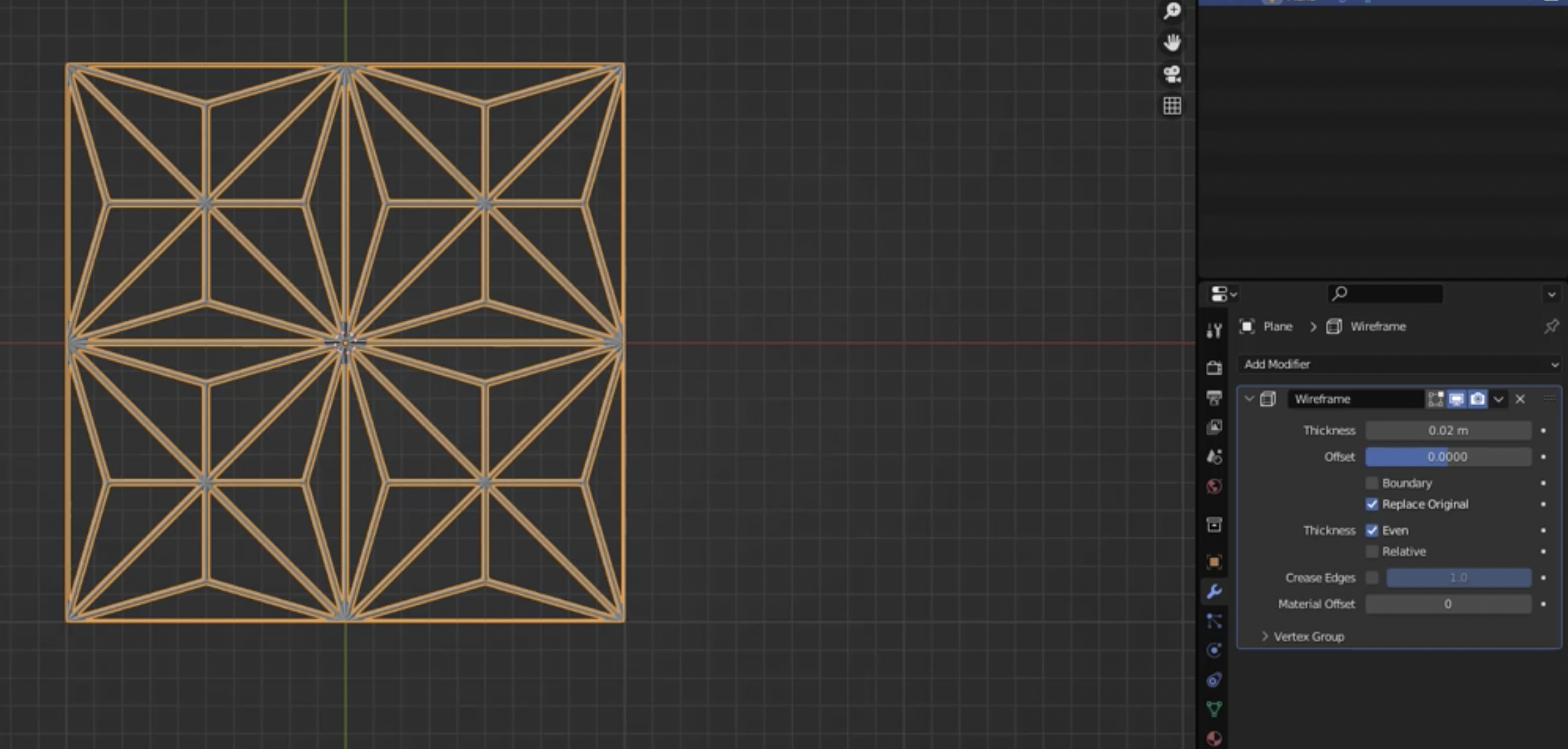 예: Object ModeWireframe Modifier 추가 시 장식처럼 보일 수 있음