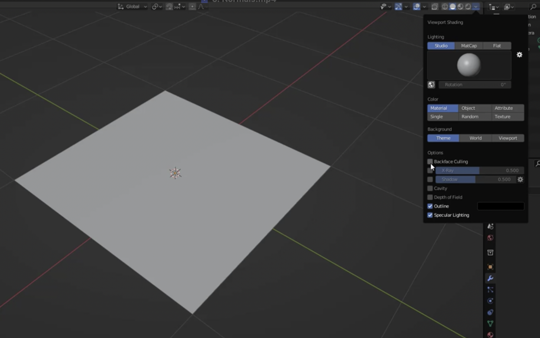 또 하나의 방법은 Shading 옵션에서 Backface Culling을 켜는 것입니다. 이 경우 뒷면은 보이지 않게 되어, 어느 쪽이 앞면인지 쉽게 파악할 수 있습니다.