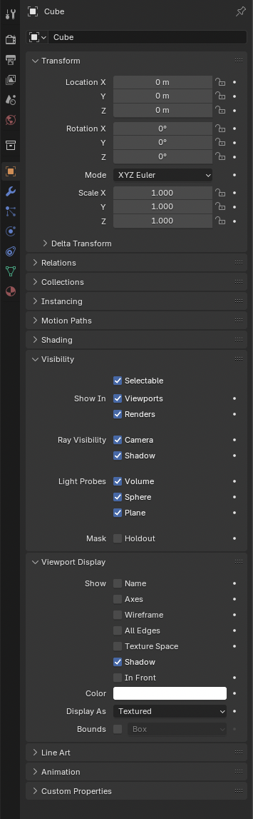 이 모든 것이 하나의 오브젝트, 예를 들면 **cube(큐브)**라는 오브젝트에 포함된 데이터입니다.