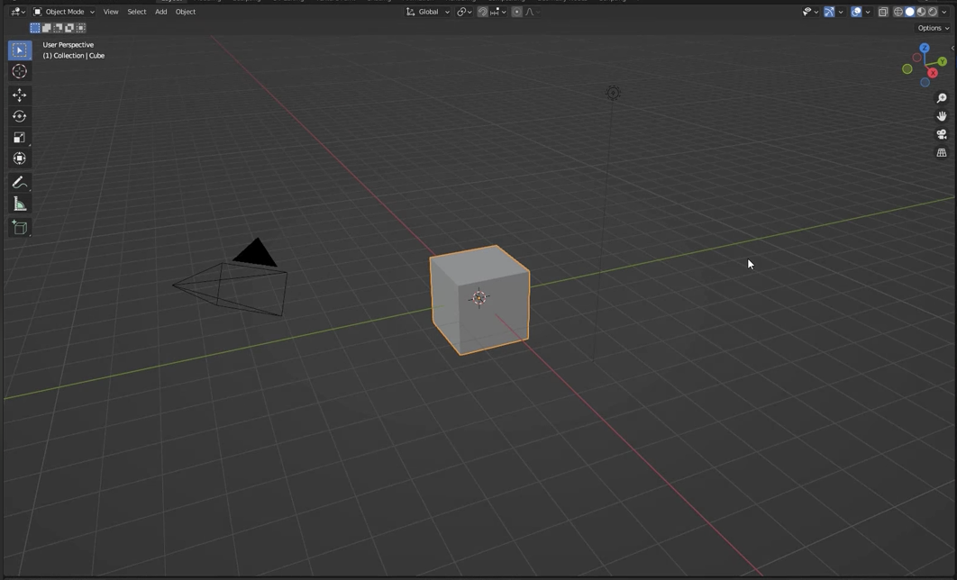 먼저 지금 보고 있는 이 영역은 **3D 뷰포트(3D Viewport)**입니다. 우리가 블렌더에서 대부분의 시간을 보내는 작업 공간이에요. 이곳에서는 다양한 **작업 모드(Work Mode)**로 전환할 수 있는데, 이건 다음 강의에서 따로 자세히 배울 예정입니다. 3D 뷰포트에 대한 내용도 따로 깊이 다룰 거예요.