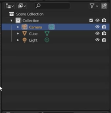 다음은 **아웃라이너(Outliner)**입니다. 여기에는 우리가 만든 모든 오브젝트(객체)들이 리스트 형태로 나와요. 예를 들어 여기 있는 ‘Light’를 클릭하면 씬 안의 라이트가 선택되고, 반대로 씬에서 선택해도 여기에서 선택된 게 표시됩니다. 오브젝트들을 **컬렉션(Collection)**이라는 폴더처럼 정리할 수 있고, 그룹별로 보기나 숨기기, 렌더 설정 등을 편리하게 관리할 수 있어요.