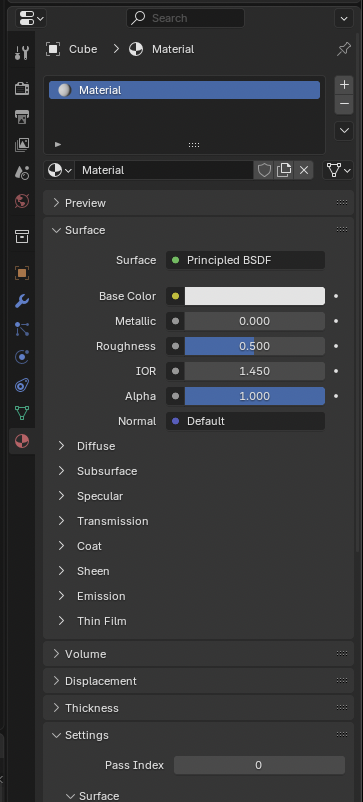 그리고 머티리얼(Material) 속성입니다.