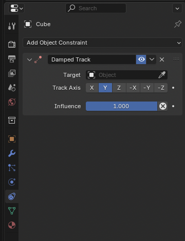 이건 주로 애니메이션에서 유용하게 사용하는데, 예를 들어 Damped Track이라는 제약 조건을 카메라에 추가하고 대상 오브젝트를 지정하면,