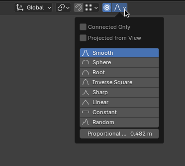 이제 **Proportional Editing(비율 편집)**을 켜줍니다.