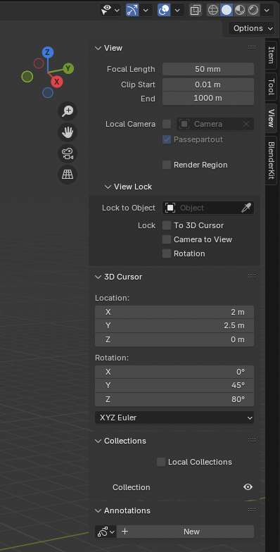 - 3D Cursor 메뉴에서 Rotation 값을 바꾸면그 축을 기준으로 오브젝트를 회전하거나 이동할 수 있습니다.