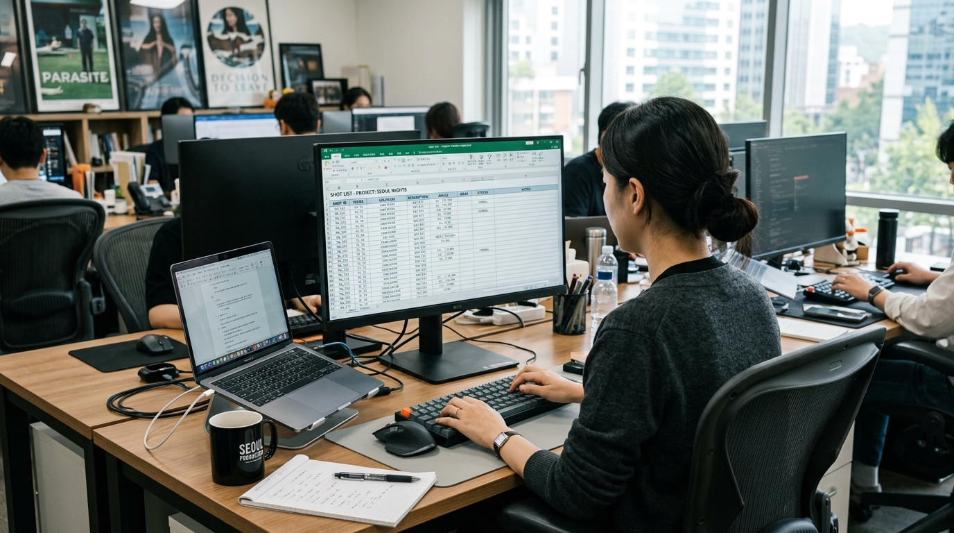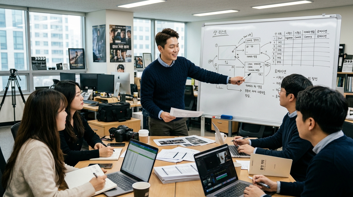 샷 리스트는 장면을 구체적으로 계획하고 감독, 촬영 감독, 스태프 모두가 같은 장면을 이해하도록 돕는 제작 청사진 역할을 합니다.